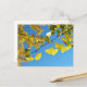 In late November, the leaves of a gingko tree in a Japanese park are acid yellow against a bold, blue sky.
