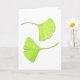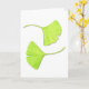 This note card and greeting card design features my original illustration of two bright green ginkgo leaves. The ginkgo is a lovely and special tree - so unique that as a species it has no close relatives, and is literally in a class by itself. I find the elegant and simple fan-shaped leaf to have a particularly pleasing shape. What a wonderful way to share the beauty of nature in your correspondence! Order cards blank, or customise with a special messasge!