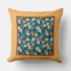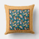 Ginkgo Leaves on Ocean Blue with Gold Border Cushion