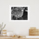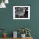 Poster is shown with a black and white photo print of a ginkgo plant with dew droplets.