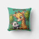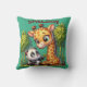 The cutest panda is sharing his bamboo with a giraffe in green and brown. Throw pillow.