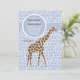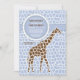 The blue animal print background features a tall, brown giraffe and a circular "ribbon" which holds your party information. Well-suited for a little boy's birthday party too!