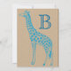 Cute aqua Giraffe on tan background with shades of blue and green lettering.