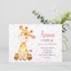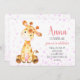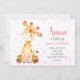 Giraffe Baby Girl Cute Confetti Pink Birthday Invitation