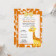 Cute Giraffe and giraffe print background. Customise with details of your baby shower.