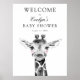 Welcome guests to your baby shower with this beautiful poster, featuring a hand drawn black and white giraffe for a jungle theme baby shower. Add the guest of honour's name, shower date and custom welcome text using the fields provided.