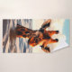 This bath towel has a giraffe on it.