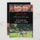 A cool design featuring a brown border with a giraffe fur pattern. Two amazing giraffes grazing in a field. Customise with all of your birthday party information as desired.