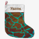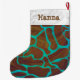 Giraffe Brown and Teal Print Large Christmas Stocking