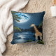 Giraffe By Moonlit River Under Starlit Sky Cushion