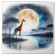 Giraffe by Serene Lake Under Full Moonlight Ceramic Tile