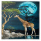 Giraffe by the Lake Under a Full Moon Night Ceramic Tile