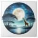 Giraffe by the Serene Moonlit Lake at Night Ceramic Tile