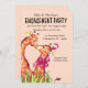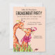 Engagement invitations with kissing giraffes standing in green grass. Customise with the happy couples party details.
