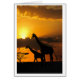 A mother giraffe and her calf are silhouetted against the setting sun behind them. Computer art by award winning artist Kathie Miller.