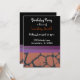 A brown and purple giraffe fur pattern accents this fun birthday invite.