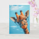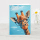A giraffe wears stylish black-rimmed glasses against a soft blue background giving it an expressive and whimsical look.