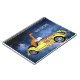 Giraffe in space is a funny illustration for all animal fans. A giraffe with a hat in yellow funky car among the stars. Add your custom text if you wish.
