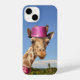 Giraffe in sparkly pink hat iPhone case