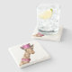 The coasters are gorgeous, a quality feel and heavy weight. They look like a precious archeological find. A rustic stone juxtaposed with a modern floral black and white print. I like the way the print goes slightly imperfect on the cut stone edges giving them a kind-of natural beauty.
