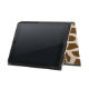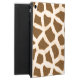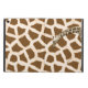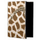 Fun iPad Air case, with built in stand, and graphics of a brown and tan giraffe fur pattern. A graphically enhanced photo of a giraffe's head and neck stretches across the front of the case. Brown text on the front is ready to personalise for yourself or as a great gift idea.
