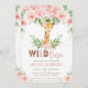 Giraffe Jungle Safari Blush Floral 1st Birthday Invitation