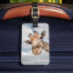 I was happy with the acrylic tag but it came with a thin leather strap to attach the tag to luggage (like a cat collar). I replaced the strap with a metal ring off of a key ring as the leather strap would come undone or break easily as luggage is sometimes handled without much care by airlines. Printing is great. Colours and positioning of the design I put on the tag were perfect. Very pleased.
