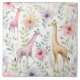 A captivating mural features a collection of giraffes in vibrant watercolor against a backdrop of delicate flowers and lush foliage, creating a lively and enchanting atmosphere. The design exudes a playful charm suited for various spaces.