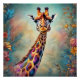A Giraffe with detailed watercolor with expressive eyes is portrayed against a soft, blurred background. The natural colours enhance the lifelike appearance.