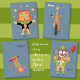 Fun blue rectangular button for kids to collect , featuring a giraffe on a unicycle , also balancing spinning plates on two sticks . Personalise it with the child's name if you wish .