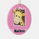 Giraffe on Pink & White Stripes Ceramic Ornament