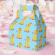 Party favour box shown in light blue with a cute cartoon giraffe print.