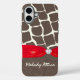Personalised Phone case with giraffe pattern and faux ruby red ribbon and faux diamond Add your name or short quote