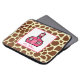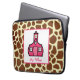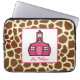 An electronics bag for teachers featuring a giraffe print background. Personalise with your name under Pink Schoolhouse.