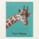 Portrait photography of a cute giraffe on a teal background, which you can personalise with your own name.
