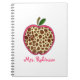 A spiral notebook for teachers featuring an illustration of a giraffe print apple. Personalise with your name.