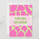 Giraffe Print Pattern, Bright Pink and Lime Green Invitation