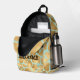 A cool design, this safari themed backpack features a giraffe print on a mint blue background. Perfect for your back to school needs, personalise your name on the bookbag today!