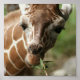 Giraffe munching on a leaf poster print.
