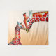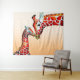 This tapestry has a giraffe and baby giraffe pictured on it.
