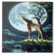 Giraffe Under Full Moon by Tranquil Water Ceramic Tile