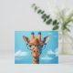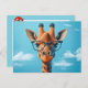 A giraffe wears stylish black-rimmed glasses against a soft blue background giving it an expressive and whimsical look.
