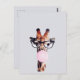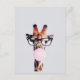 Giraffe wearing glasses blowing a pink bubble gum postcard