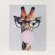 GIRAFFE WEARING GLASSES BLOWING A PINK BUBBLEGUM JIGSAW PUZZLE