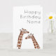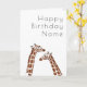 Illustration of two friendly giraffes on a bright white background. A minimalist design with striking Art Deco style text. Easily personalise this card by editing the template text inside and out. Thank you for viewing my designs!