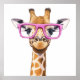 Giraffe with Pink Glasses Poster