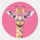 Giraffe with Pink Glasses on the pink background. This is sticker for giraffe's lovers.