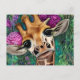 Giraffe with Roses and Watercolor Postcard