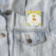 This cute and whimsical button can be personalised with a name or title, such as mum, grandma, niece, big sister etc. The design features an adorable giraffe with a flower crown and yellow floral arrangements with faux gold glitter confetti. The text combines handwritten script and sans serif fonts for a stylish and modern look. This is perfect for a giraffe themed baby shower.