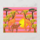 Colourful postcard with African animals and stripes.